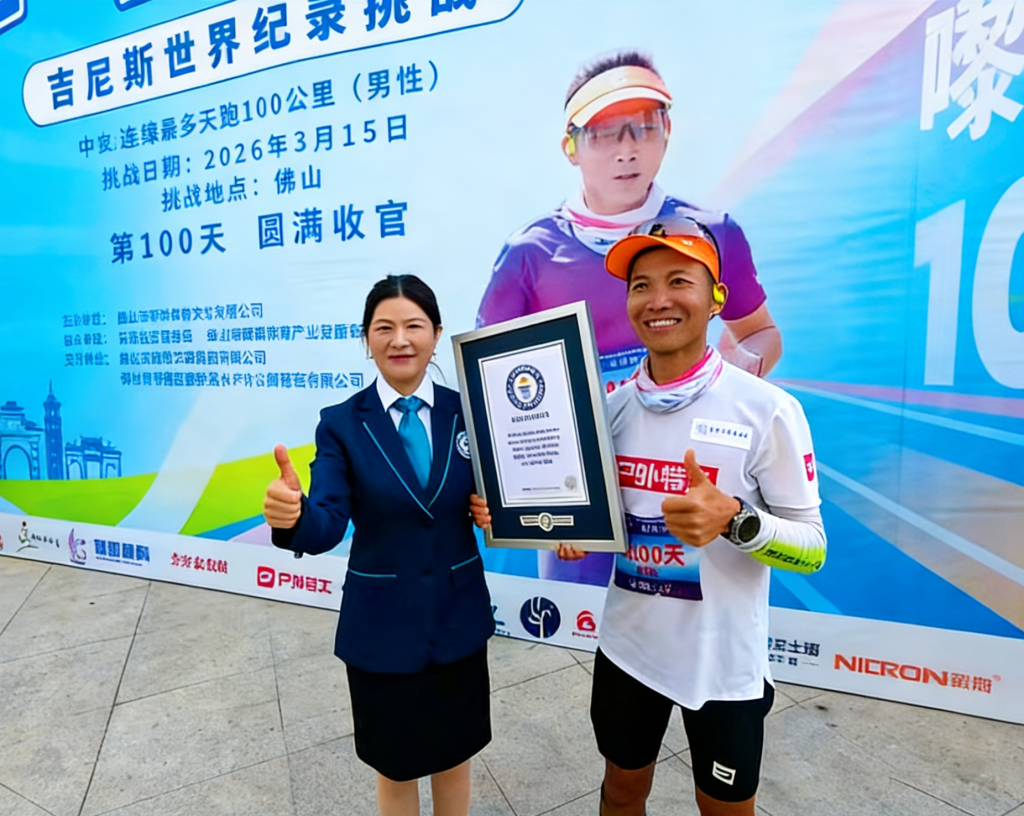黄正龙,江湖人称“龙少”,广西贵港人,从餐饮创业者成长为国内顶尖极限耐力跑者,在跑圈早已是传奇般的存在。他并非体制内专业运动员,却凭着一股近乎执拗的热爱与自律,在耐力赛道上不断刷新人们的认知。早年他曾完成环跑中国365天,日均里程超60公里;而这一次,他以连续100天、每天100公里的极致坚持,完成总里程一万公里的极限挑战,并获得吉尼斯世界纪录现场认证。“龙少”这个称号,在跑圈早已不只是一个名字,更是一种精神符号——代表草根出身、不靠光环、只靠脚步走出属于自己的极限之路。他的百日征程,不仅是个人意志的胜利,更是中国民间超马力量的集中展现,对整个中国跑圈的影响,无疑是巨大而深远的。